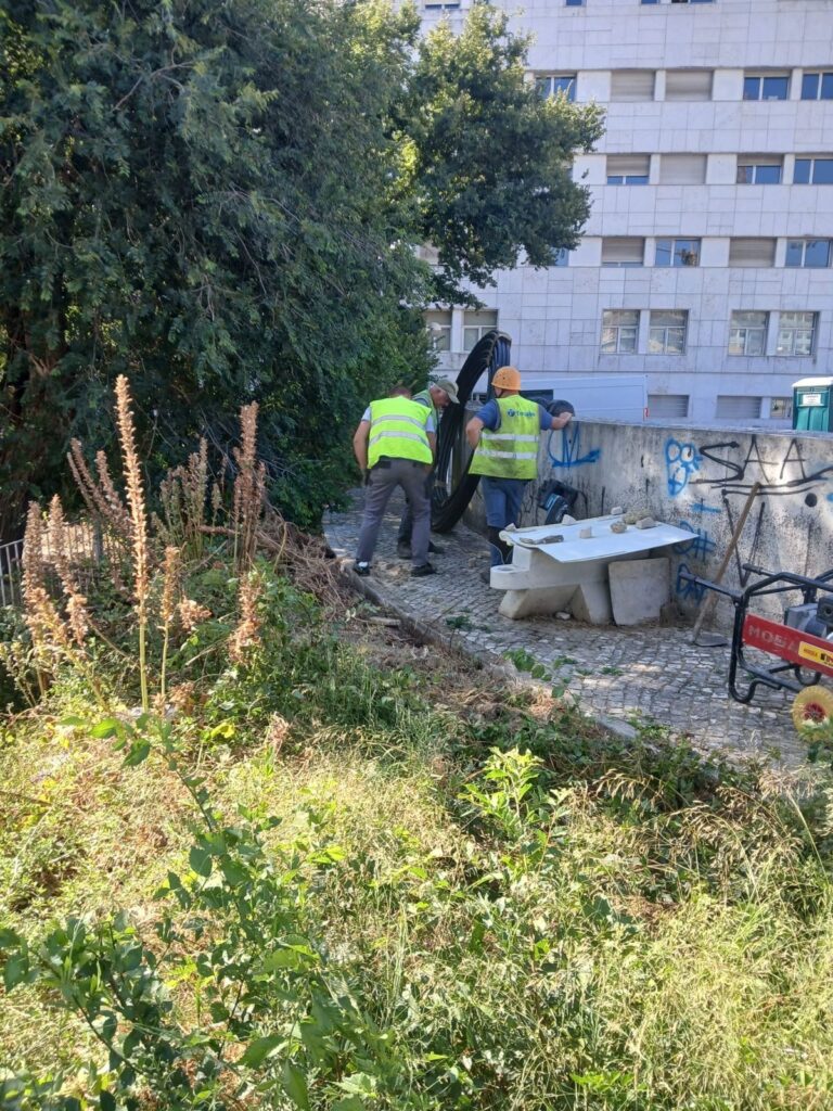 The LUMIRing project has officially launched with a ceremonial “first stone” event on July 24, marking the beginning of one of the most ambitious and innovative optical fiber testbeds ever deployed in a real-world environment. The groundbreaking initiated the construction of the duct that now connects Iscte’s Optical Communications Laboratory to Lisbon Metro’s Yellow Line. Completed on August 1, the construction of the duct represents the initial step to a global first: a 26-kilometer multicore fiber (MCF) ring installed within a complex underground transportation system, pushing the limits of current fiber optic technologies. This milestone stands as a strategic achievement not only for Iscte and the city of Lisbon—by integrating science and urban mobility—but also for Portugal and Europe, by positioning the country at the forefront of research in optical communications and next-generation digital infrastructures.